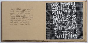 Édition originale entièrement écrite à la main par l'auteur, ornée de 2 pointes-sèches originales hors texte de Julius Baltazar et de 2 photographies collées d'André Villers.