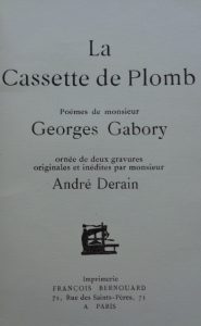 GABORY (Georges). La Cassette de plomb. Paris, François Bernouard, 1920.