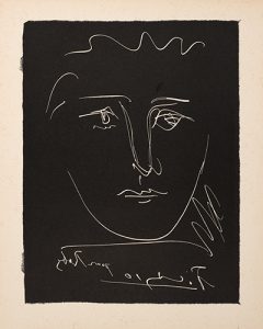 Un des exemplaires du tirage courant sur vélin avec une reproduction, sans la pointe-sèche originale de Pablo Picasso.