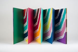 In-folio, plié en accordéon, couverture, emboîtage de toile ocre de l'éditeur.