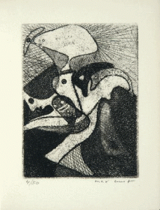 Un des 50 premiers exemplaires sur Marais Crèvecoeur contenant une superbe eau-forte originale signée de Max Ernst, hors texte.
