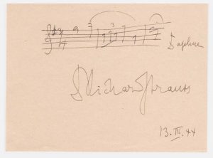 Bel envoi signé avec 3 mesures autographes tirées de l’opéra « Daphné » composé en 1937.