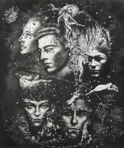 MAN RAY - LES CONSTELLATIONS DE VALENTINE HUGO. Photographie originale, circa 1935. 20,5 x 17 cm, sous encadrement.