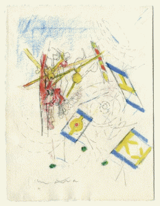 Le dessin est réalisé au verso de la page de titre de Vigies sur cibles d'Henri Michaux que Matta a illustré.