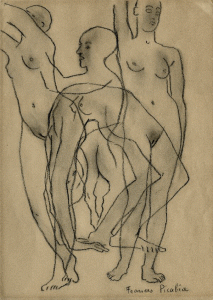 Dessin original au fusain signé au recto par Francis Picabia représentant des femmes nues dans l'esprit des transparences.