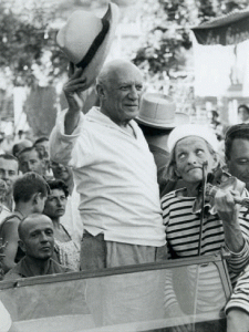«Fête en l'honneur de Picasso à Vallauris à gauche en bas Michel Leiris».