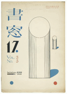 REVUE. SHOSO. Tokyo. Numéro 17 de 1936. In-8, couverture illustrée recto-verso de compositions modernistes de Koshiro Onchi, également éditeur de cette revue.