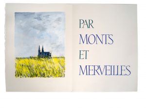 (REMON Jean-Pierre) LA VARENDE Jean de : Par monts et merveilles. 1966. ♦ E.O. L’un des 60 ex. sur Arches, celui-ci n°84, troisième papier, signé par l’artiste et le préfacier. En feuilles, in-4, sous boîte éditeur pleine toile...