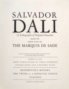 DALI Salvador : 25 lithographies originales à la gouache à partir de 3 pièces du Marquis de SADE. Shorewood Publishers Incorporated N-Y New-York 1969. ♦ E.O. Tirage limité à 276 ex.