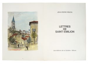 REMON Jean-Pierre : Lettres de Saint-Emilion. Mâcon 1975. E.O. L’un des 100 ex. sur Arches, papier de tête. Exemplaire signé par l’artiste. Broché in-4.