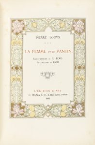 1903. - LIBRO : (BIBLIOFILIA). - LOUYS, PIERRE: LA FEMME ET LE PANTIN. Paris : Ed. d´ Art. H. Piazza & Cie, 1903. 8º mayor.