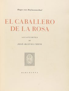 1949. - LIBRO : (BIBLIOFILIA). - HOFMANNSTHAL, HUGO VON : EL CABALLERO DE LA ROSA. AGUAFUERTES DE JOSÉ-MANUEL CHICO. TRADUCCIÓN DEL ALEMÁN POR JOSÉ LLEONART. Sabadell : Joan Sallent, 1949. 4º. 213 p., 4 h.