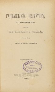 1889. - LIBRO : (CIENCIA). - VALLEDOR, BALDOMERO G. : FARMACOLOGÍA DOSIMÉTRICA ALCALOIDOTERAPIA. Madrid : Biblioteca de la ´Revista de medicina dosimétrica´, 1889. 8º. 511 p.