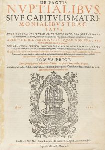 1612-1622. - LIBRO : (DERECHO). - FONTANELLA, J. P : DE PACTIS NUPTIALIBUS SIVE CAPITULIS MATRIMONIALIBUS TRACTATUS. Barcelona : Laurentinum Deu, 1612-1622. 2 vols. en 4º mayor.