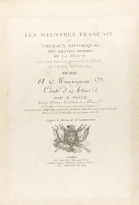 20 h. Todas con grabados dibujador por C. P. Marillier y grabados por N. Ponce, en la cabecera retrato del personaje descrito en una orla y rodeado por escenas destacadas de su vida, ordenado en el dibujo con decoración floral o arquitectónica, un texto de la vida del personaje y un magnífico cul-de-lamp, todo en plancha.