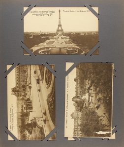 En el segundo álbum con abundantes postales de principios del s. XX con imágenes de Barcelona y algunas postales de historia de la moda, otras son vistas de París, Versalles, etc.