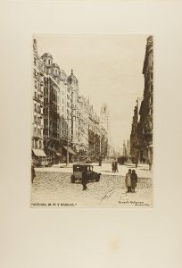 1930. GRABADO : (MADRID). - CONJUNTO DE 12 AGUAFUERTES DE MADRID. Aguafuertes en tinta sepia, papel 38 x 28 cm, planchas de aprox. 25 x 17,5 cm.