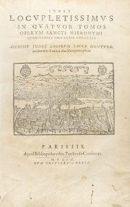 1609. - LIBRO : (HISTORIA UNIVERSAL). - REATINO, MARIANO VICTORIO : SANCTI HIERONYMI STRIDONESIS. Parisiis : Apud Bibliopolas urbis Parisiensis Confortes, 1609. 4 vol. Gran folio.