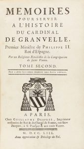 1753. - LIBRO : (HISTORIA). - LEVESQUE : MÉMOIRES POUR SERVIR A L´HISTOIRE DU CARDINAL DE GRANVELLE, PREMIER MINISTRE DE PHILIPPE II. ROI D´ ESPAGNE. París : Imp. Guillaume Desprez. 2 vol. en 8º.