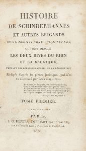 1810. - LIBRO : (HISTORIA). - HISTOIRE DE SCHINDERHANNES. París : Imp. J. G. Dentu, 1810. 8º. LVII + 221 p. + 252 p. Frontis grabado en ambos tomos.