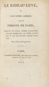1815. - LIBRO : (HISTORIA). - LE RIDEAU LEVÉ, OU COUP-D´OEIL GÉNÉRAL SUR LES PRISONS DE PARIS... París : Lib. Laurent-Beaupré, 1815. 8º. 270 p.
