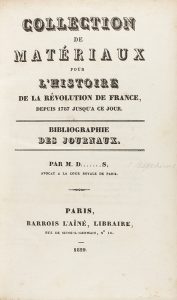 1829. - LIBRO : (HISTORIA-REVOLUCIÓN FRANCESA). - COLLECTION DE MATÉRIAUX POUR L´HISTOIRE DE LA RÉVOLUTION DE FRANCE, DEPUIS 1787 JUSQ´A CE JOUR. París : Lib. Barrois l´Aîne, 1829. 8º mayor. XXIV + 645 p.