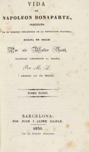 1830. - LIBRO : (HISTORIA-NAPOLEÓN). - SCOTH, WALTER : VIDA DE NAPOLEÓN BONAPARTE PRECEDIDA DE UN BOSQUEJO PRELIMINAR DE LA REVOLUCIÓN FRANCESA. Barcelona : Juan y Jaime Gaspar, 1830. 9 vol. en 8º menor.