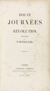 1832. - LIBRO : (HISTORIA). - BARTHELEMY. DOUZE JOURNÉES DE LA REVOLUTION. París : Ed. Perrotin, 1832. 8º mayor. VIII+ 396 p. 12 grabados fuera del texto.