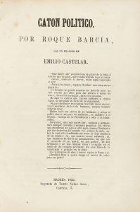 1856. - LIBRO : (HISTORIA). - BARCIA, ROQUE : CATÓN POLÍTICO. Madrid : Imp. Tomás Nuñez Amor, 1856. 8º. 222 p.