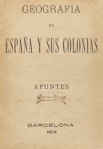 1878. - LIBRO : (HISTORIA-COLONIALISMO). - PALUZIE, E. : GEOGRAFÍA DE ESPAÑA Y SUS COLONIAS. Barcelona : S. Imp., 1878. 8º mayor. 280 p. Papel tostado.