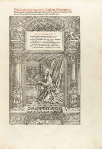 1518. - LIBRO : (HUMANIDADES). - [OBRAS DE SAN GERONIMO]. Lugduni : per magistrum Iacobii Saccon, 1518. 17 h. , 1 bl. + DIVI EXIMII QUE DOCTORIS EUSEBII HIERONYMI, CXVII fol., 1 bl.