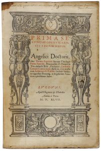 1547. - LIBRO : (RELIGION). - AQUIN, THOMAE : PRIMA SECUNDAE OPERUM. Lugduni (Lyon) : Apud Hugonenm & Haeredes, 1547. Folio. 24 h., 173 fol.