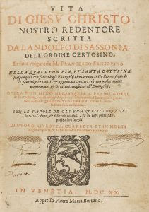 1620. - LIBRO : (HUMANIDADES). - SASSONIA, LANDOLFO DI : VITA DI GIESV CHRISTO NOSTRO REDENTORE SCRITTA DA... Venetia : Ed. Pietro Maria Bertano, 1620. 8º mayor. 12 h. + 704 p. + 670 p. + 16 h.