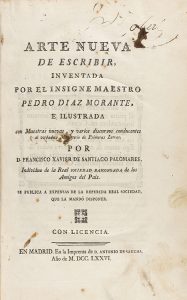 1776. - LIBRO : (CALIGRAFIA). - SANTIAGO PALOMARES, FRANCISCO : ARTE NUEVA DE ESCRIBIR INVENTADA POR EL MAESTRO PEDRO DIAZ MORANTE. Madrid : Imp. de Antonio de Sancha, 1776. Folio.