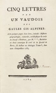 1784. - LIBRO : (HUMANIDADES). - CINQ LETTRES PAR UN VAUDOIS DES GAULES CIS-ALPINES. S.l. : s. imp., 1784. 8º mayor. 2 h. + 74 p.