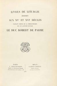 1932. - LIBRO : (RELIGIÓN). - LIVRES DE LITURGIE IMPRIMÉS AUX XV ET XVI SIÈCLES FAISANT PARTIE DE LA BIBLIOTHÈQUE DE SON ALTESSE ROYALE LE DUC ROBERT DE PARME. París : L. Giraud-Badin, 1932. 4º menor. XI + 162 p.