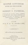 1830. - LIBRO : (LITERATURA)). - BOU, THOMAS : QUATRE CONVERSAS ENTRE DOS PERSONATGES DITS ALBERT I PASQUAL. Barcelona : Imp. de la Viuda y Fills de Don Anton Brusi, 1830. 12º. 293 p.