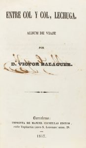 1847. - LIBRO : (LITERATURA). - BALAGUER, VICTOR : ENTRE COL Y COL. LECHUGA. ALBUM DE VIAJE. Barcelona : Imp. Manuel Clusellas, 1847. 8º. 310 p.