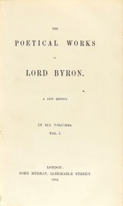 1856. - LIBRO : (LITERATURA INGLESA). - BYRON, LORD : THE POETICAL WORKS. Londres : John Murray, 1855-1856. 6 vol. en 4º menor.