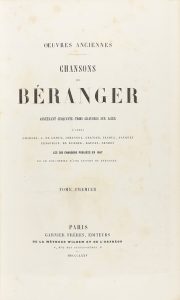 1875. - LIBRO : (LITERATURA). - BERANGER : CHANSONS DE BÉRANGER. París : Garnier Frères, 1875. 2 vol. en 4º menor.