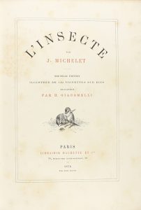 1876. - LIBRO : (LITERATURA). - MICHELET, J. : L´ INSECTE. París : Lib. Hachette, 1876. 4º. 458 p.