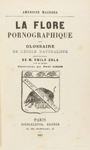 1883. - LIBRO : (ÉROTICA). - MACROBE, AMBROISE : LA FLOR PORNOGRAPHIQUE. GLOSSAIRE DE L´ÉCOLE NATURALISTE EXTRAIT DES OEUVRES DE M. EMILIE ZOLA ET DE SES DISCIPLES. París : Ed. Doublelzévir, 1883. 8º. 226 p.
