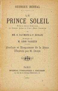 1889. - LIBRO : (LITERATURA). - BERTAL, GEORGES : LE PRINCE SOLEIL. PIECE A GRAND SPECTACLE EN QUATRE ACTES ET VINGT-DEUX TABLEAUX. París : Imp. Typographique J. Kugelmann. 8º. 3 h. + 36 p. 11 ilustr. de E. Doré.
