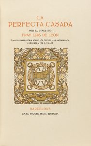 1930. - LIBRO : (LITERATURA). - LEÓN, FRAY LUIS DE : LA PERFECTA CASADA. Barcelona : Casa Miquel-Rius, 1930. 8º mayor. IX + 225 p.