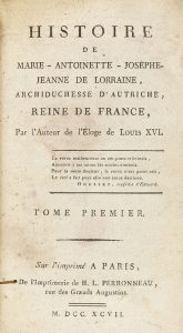 1797. - LIBRO : (HISTORIA). - MONTJOYE : HISTOIRE DE MARIE-ANTOINETTE-JOSEPHE-JEANNE DE LORRAINE, ARCHIDUCHESSE D´ AUTRICHE REINE DE FRANCE PAR L´ AUTEUR DE LA LOGE DE LOUIS XVI. París : Imp. H.L. Perroneau, 1797. 8º. XXIV + 234 p.