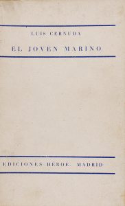 1936. - LIBRO : (GENERACIÓN DEL 27-1ª EDICIÓN). - CERNUDA, LUIS : EL JOVEN MARINO. Madrid : Eds. Heroe, imp. por Concha Méndez y Manuel Altoalguirre, 1936. 8º. 25 p. + 1 h.