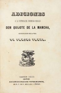 1845. - LIBRO : (CERVANTINA). - JARA Y SANCHEZ DE MOLINA, JUAN FRANCISCO DE LA : ADICIONES A LA HISTORIA DEL INGENIOSO HIDALGO DON QUIJOTE DE LA MANCHA, CONTINUACIÓN DE LA VIDA DE SANCHO PANZA. Madrid : F. P. Mellado, 1845. 8º. 4 h. + 214 p.