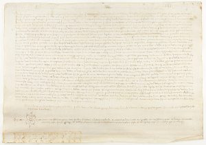 1481. MANUSCRITO : (PERGAMINO). - HERENCIA DE MARGARIDA FAIG. 26 X 37 cm. Manuscrito sobre pergamino sobre una herencia de una vecina de Gerona.