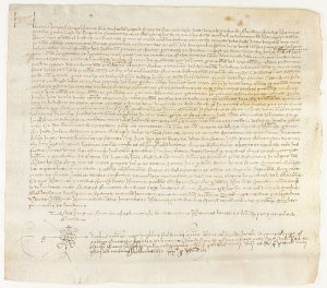 1483. MANUSCRITO : (PERGAMINO). - NUPCIAS DE JOHANNA, HIJA DE MICHAELIS VINYALS. FLASSA. 28 X 31,5 cm. Manuscrito sobre pergamino.