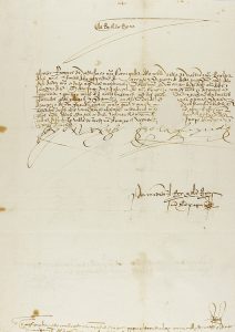 1500 ca. - MANUSCRITO : (FIRMA REAL-REYES CATOLICOS). - LIBRANZA EXPEDIDA POR LOS REYES CATOLICOS A DN. ALFONSO RAMIREZ DE VILLAESCUDA, CORREGIDOR DE VALLADOLID, COMO RECAUDADOR DE RENTAS DE DICHA CIUDAD. Dado en Medina del Campo, . ♦ Firma...